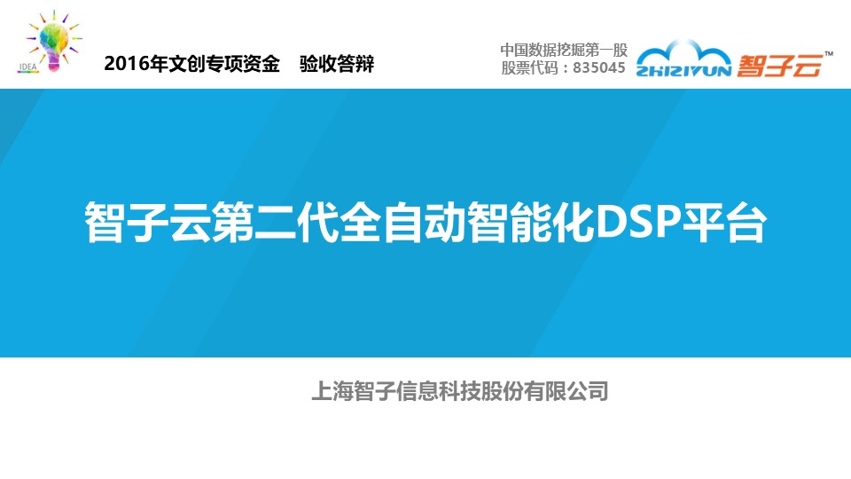 智子云第二代全自动智能化DSP平台项目于2016年成功申报上海市文创项目,并于当年3月开始研发,目前项目成果已经在智能化广告投放领域投入应用。凭借人工智能及自动化的优势,智子云DSP节省了大量人力成本,实现了广告投放效率飞跃式的提升,引领整个DSP行业进入了一个崭新的智能化投放时代。