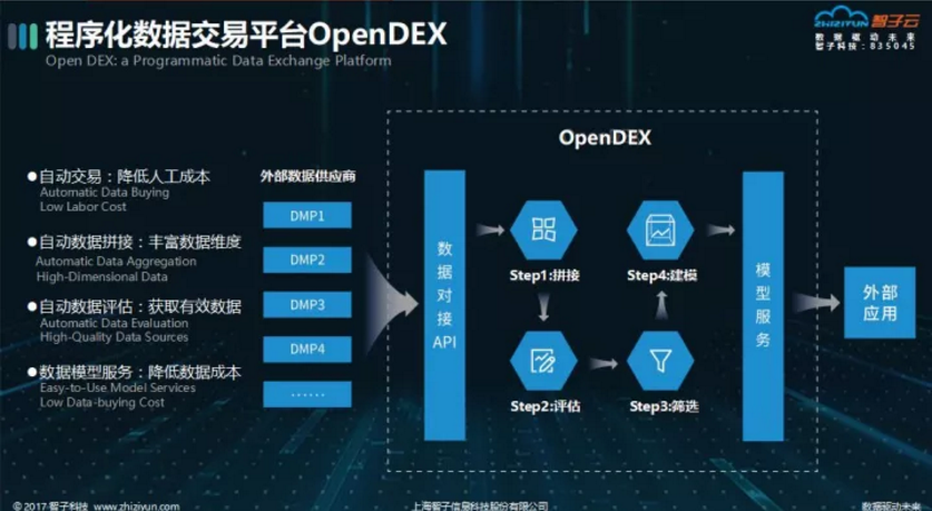 通过此次合作,智子云将把自己的核心数据产品自动化数据交易平台OpenDEX搭建在数据安全屋上,充分利用安全屋的数据资源、计算能力和安全技术,通过数据挖掘模型准确评估各方数据质量,最终以模型服务的方式为安全屋的用户提供智能化的数据交易服务。智子云OpenDEX突破传统“按条售卖”的数据交易模式,通过「模型服务Model Service」的方式对外提供服务,能够有效降低数据成本,促进数据的流通和使用,让数据价值达到最大化。UCloud同时也将利用智子云Z-Cloud营销云平台为安全屋的用户提供互联网精准营销方案。