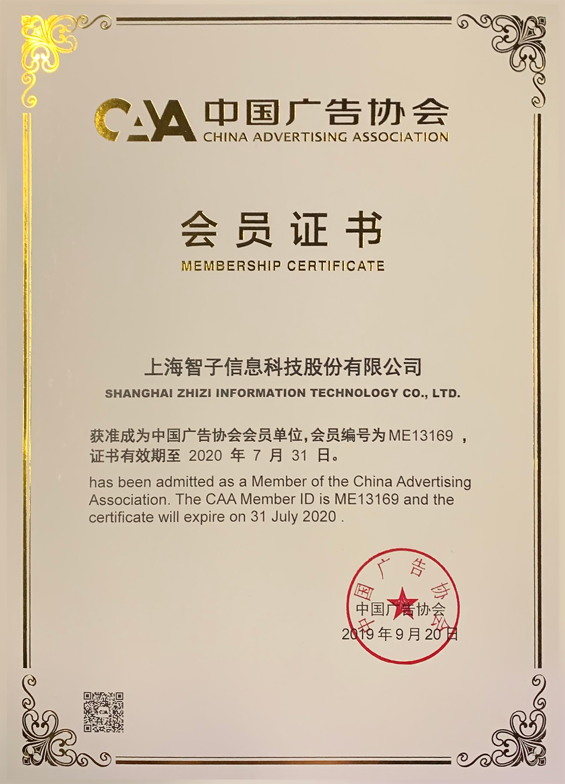 2019年9月,上海智子信息科技股份有限公司(以下简称“智子云”)正式加入中国广告协会。经中国广告协会互联网广告委员会批准,智子云成功入驻中国广告协会互联网广告数据服务平台,致力于与中广协数据服务平台的成员共同参与建设和维护数据服务平台。在中国广告协会的领导下,引导互联网广告有序、规范、科学发展。