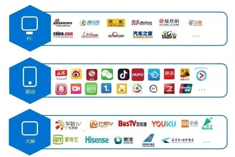 智子营销云平台积极开拓头部媒体流量的对接。先后完成了微信朋友圈、抖音、网易信息流、百度信息流、百度视频、今日头条、广点通等头部媒体的程序化对接,同时增加了激励视频、短视频、视频信息流、可玩广告等媒体形式的支持。