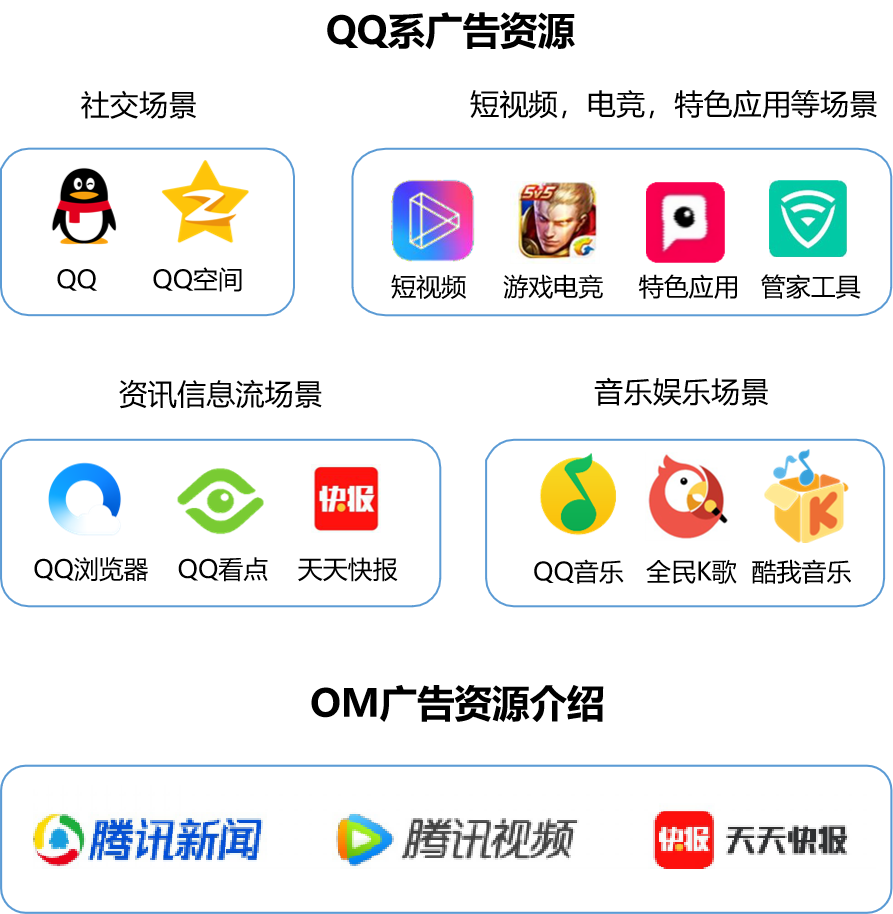 平台拥有覆盖超过11亿网民的QQ、QQ空间社交用户场景,月活超过5亿的腾讯视频,应用宝和QQ浏览器、腾讯新闻、天天快报、腾讯体育等行业领先新闻资讯平台,此外,还包括汇聚行业优质流量的优量广告。