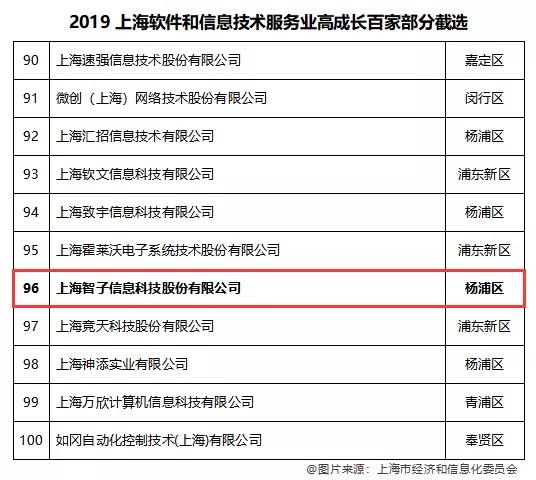 近日,上海市经济和信息化委员会发布“双百”企业名单,上海智子信息科技股份有限公司(简称智子云)凭借近三年的高成长性、自主研发能力及行业影响力入围“2019上海软件和信息技术服务业高成长百家”。