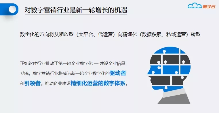 所以,我的观点是,正如软件行业推动了第一轮企业数字化——建设企业信息系统,数字营销行业将成为新一轮企业数字化的驱动者和引领者,推动企业建设精细化运营的数字体系。