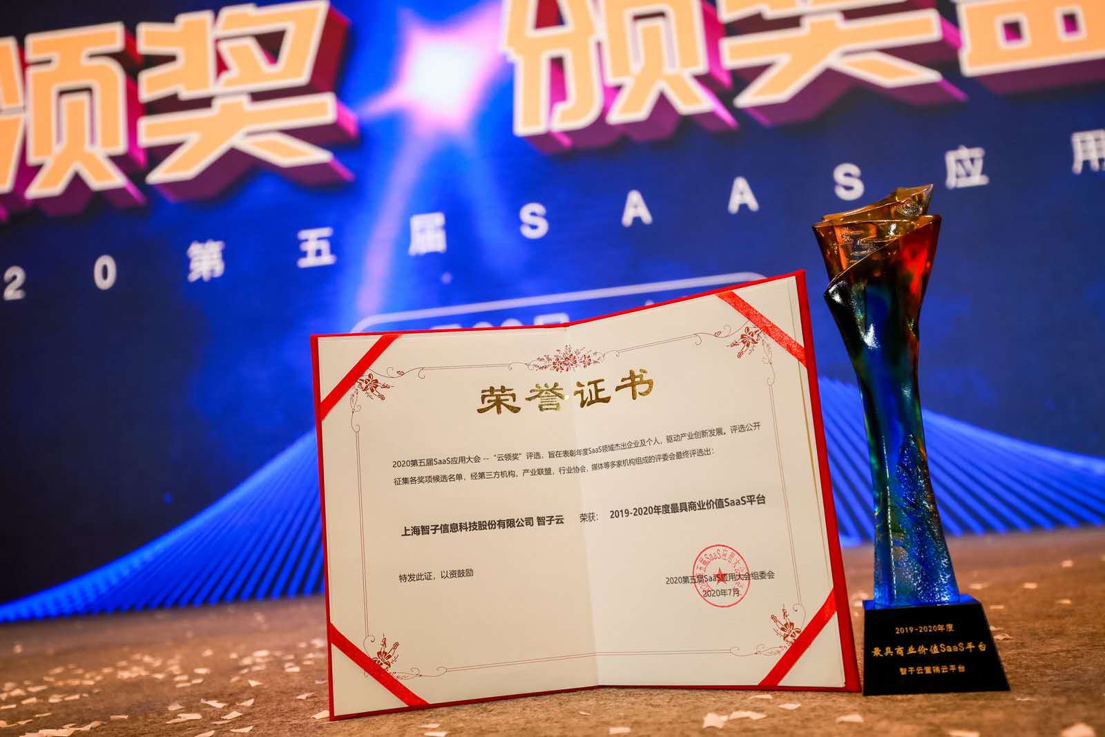 喜讯 | 智子云荣获 CSIC2020 第五届云领奖“年度最具商业价值SaaS平台”大奖