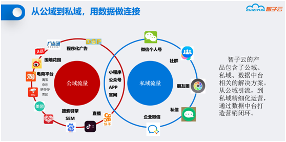 打个比方,公域是大江大河,私域就是你自己的池塘。从大江大河到池塘之间要有活水通道,缺乏公域的私域是无源之水。私域流量盛行反映的就是依靠大平台、公域的粗放式运营向基于数据的精细化运营的转变。