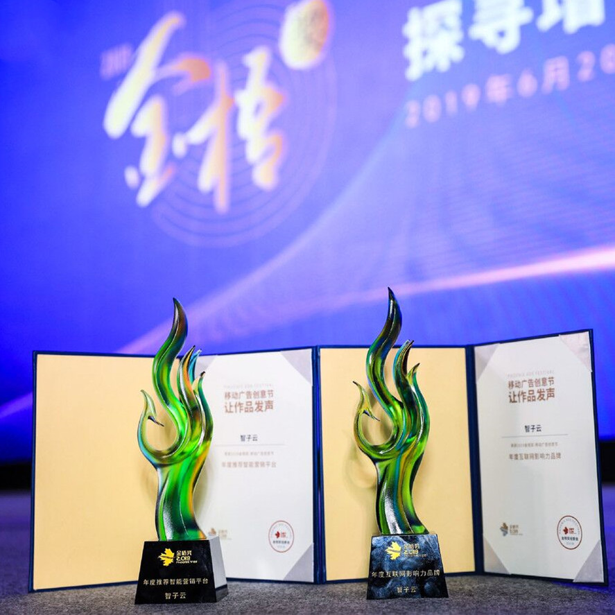 2019年6月20日,以“探寻移动增长新引擎”的第五届金梧奖移动广告创意节在上海小南国花园酒店落下帷幕。智子云在此次盛典中荣获“年度互联网影响力品牌”和“年度推荐智能营销平台”双项大奖。