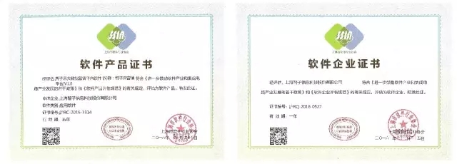 喜讯!智子云日前接连通过上海市软件行业协会“双软认证”和上海市科学技术委员会高新技术企业认定,分别于2016年11月18日、11月21日颁发了上海市高新技术企业认定通知和《软件产品登记证书》、《软件企业认定证书》。