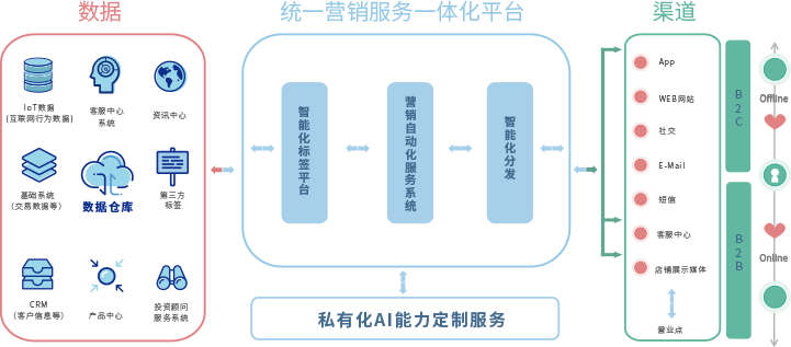 各业务环节流程割裂,缺乏统一平台支持,数据和业务场景及流程割裂,导致营销和服务效果的反馈不闭环或者周期太长,无法有效持续改善。